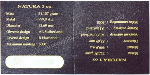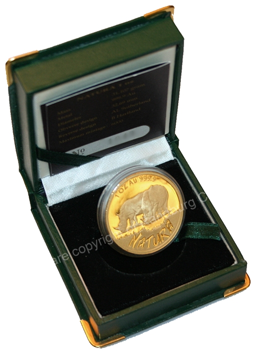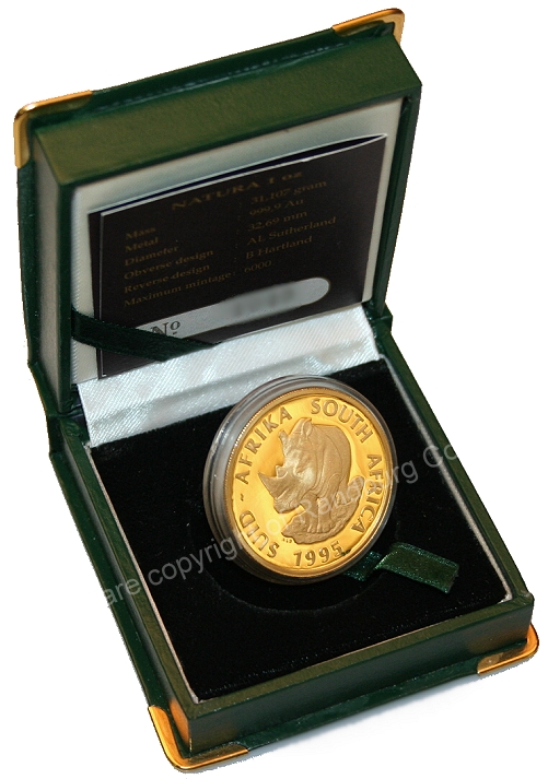 1995 SOUTH AFRICA - 1oz GOLD PROOF RHINO NATURA SERIES