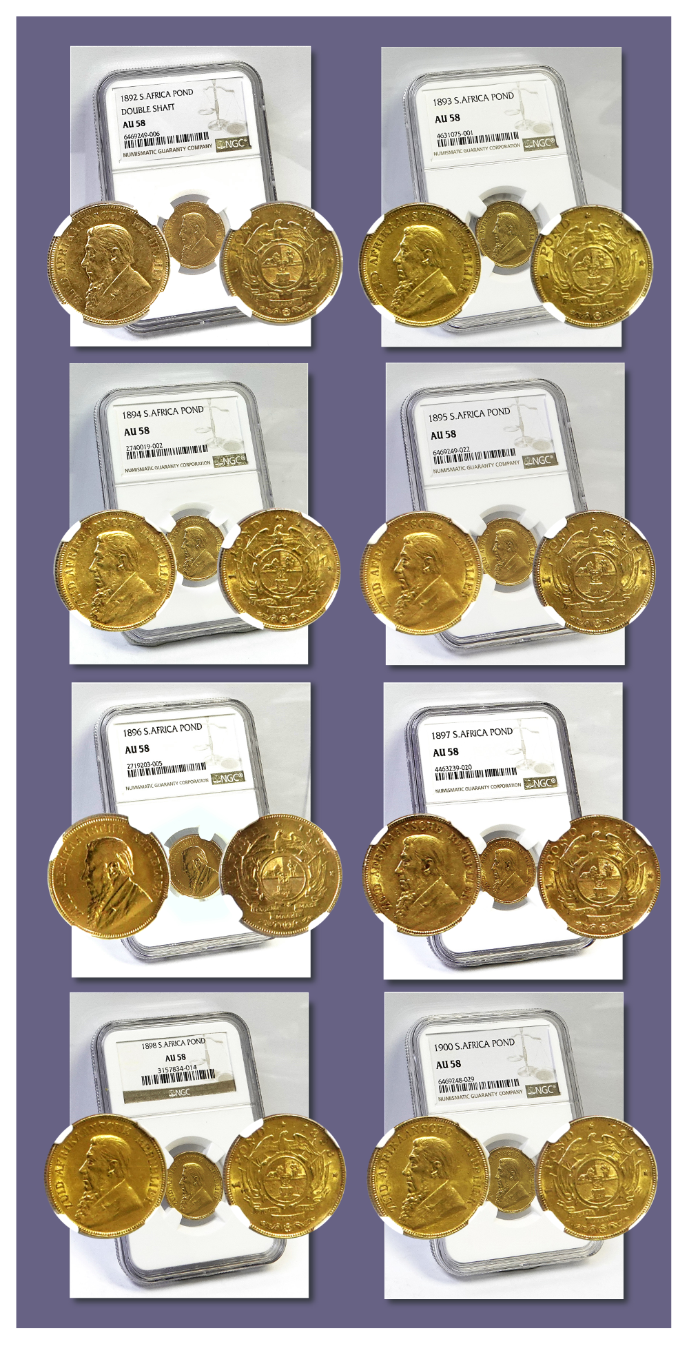 1892 to 1900 Gold ZAR Kruger Ponde - Graded Coins